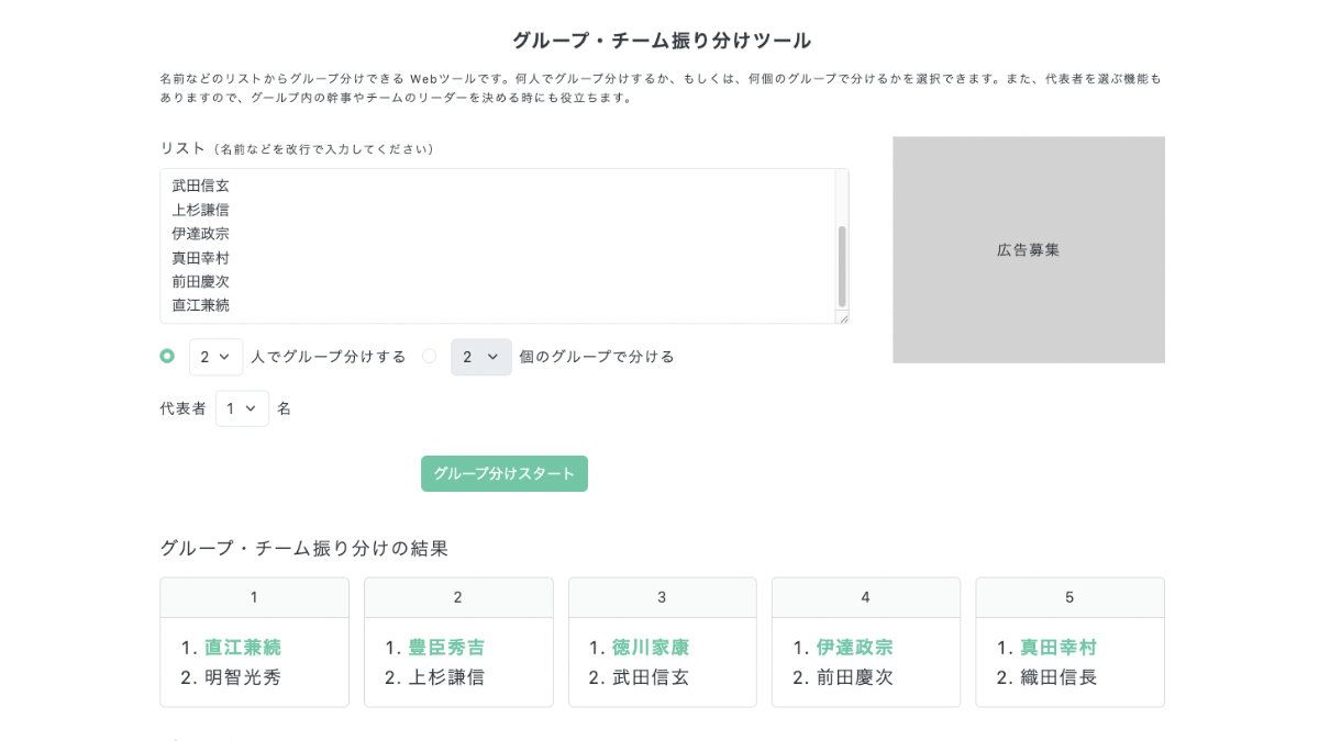 グループ分け、チーム分けする時に、ぜひ使ってみてください。